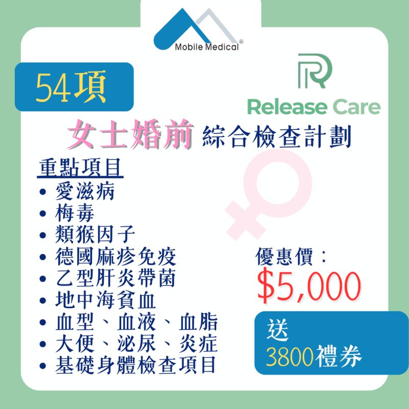 女士婚前 身體檢查 (送3800 Apple Gift Card / 超市禮卷) *美邦醫學體檢中心