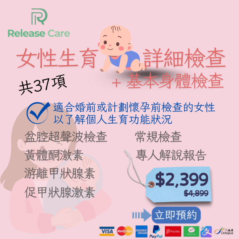. 女性生育詳細檢查 + 基本身體檢查 (共37項) *美邦醫學體檢中心 (只限旺角分店) -