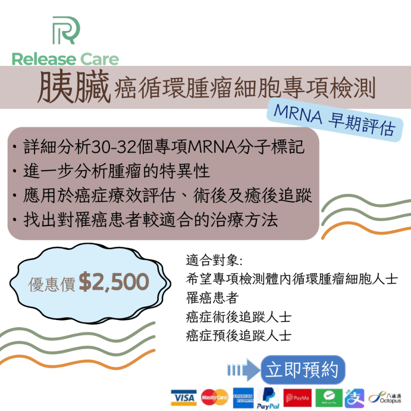. 胰臟癌循環腫瘤細胞專項檢測之 mRNA 早期評估 (男女適用) *美邦醫學體檢中心 -