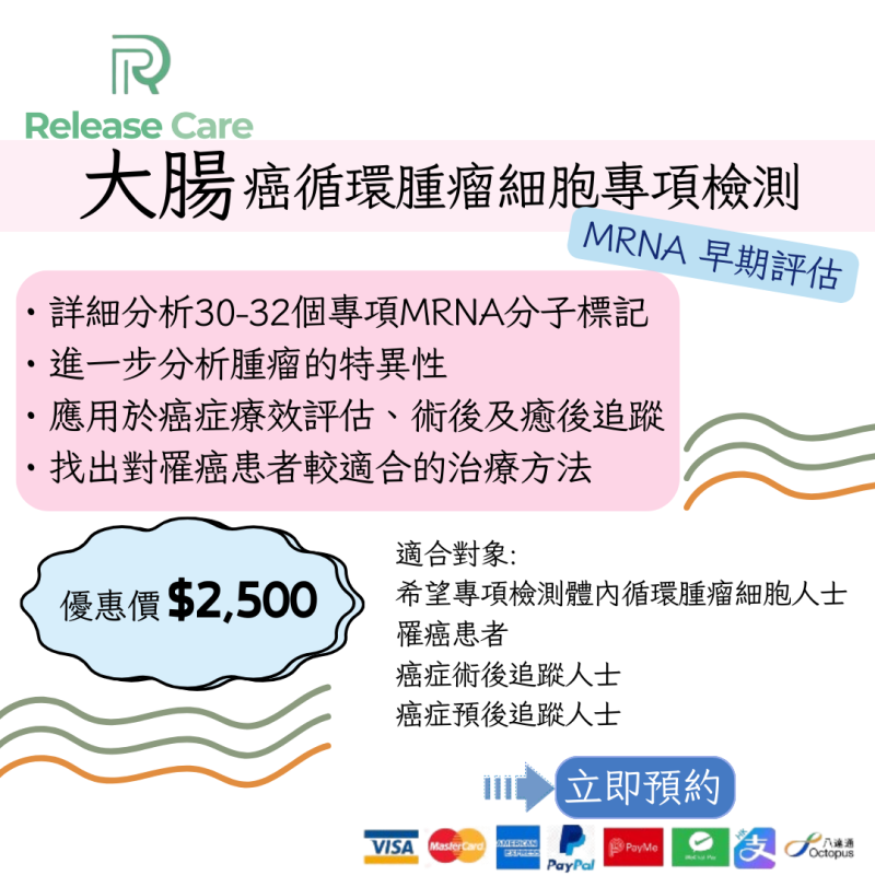 大腸癌循環腫瘤細胞專項檢測之 mRNA 早期評估 (男女適用) *美邦醫學體檢中心