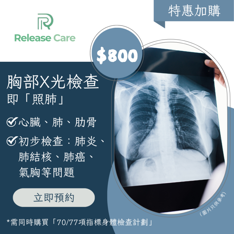 . 胸部X光檢查 (需同時購買70/77項指標身體檢查) -